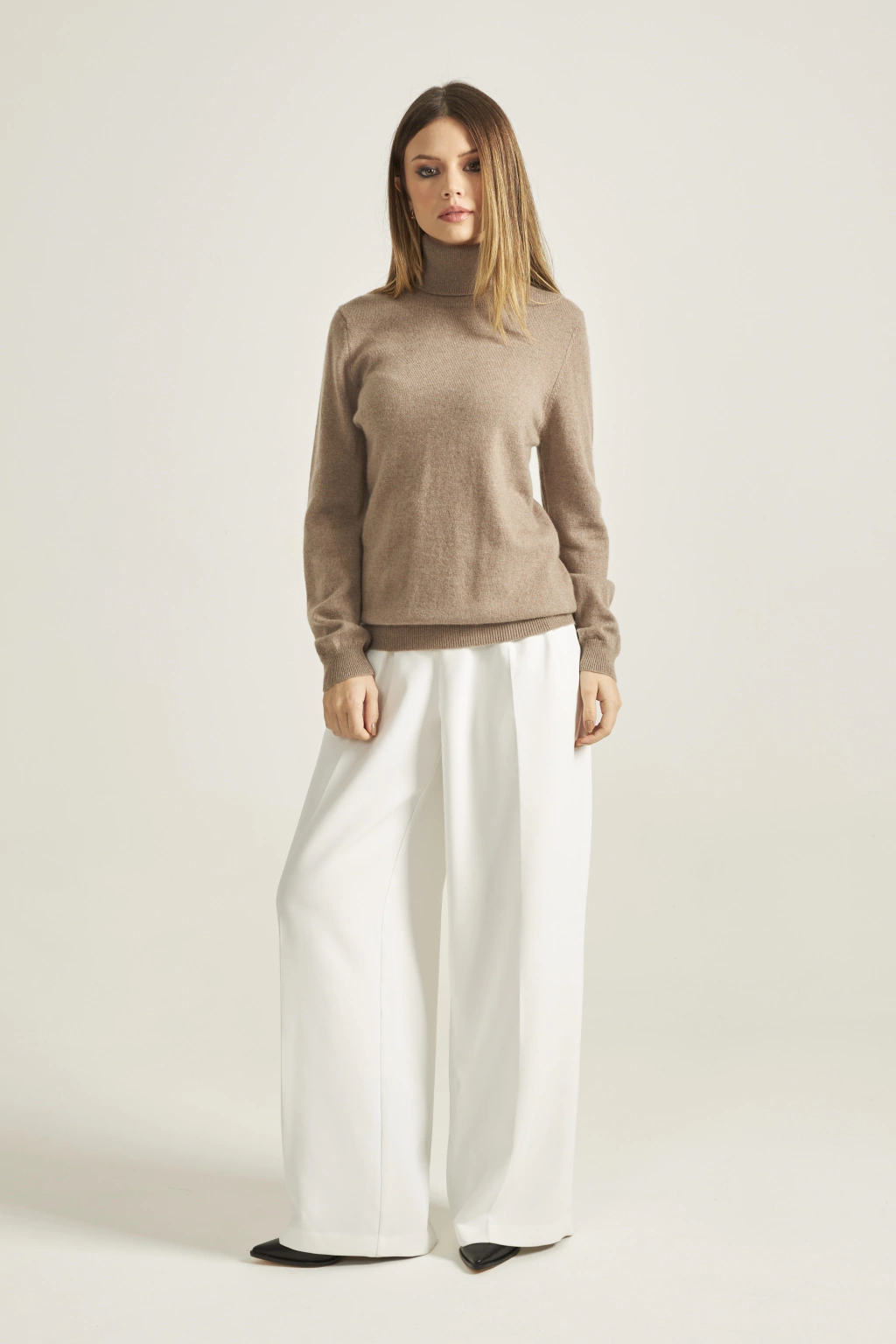Blusa de gola alta, confeccionada 100% em Cashmere.