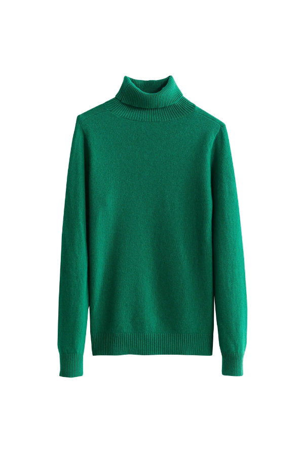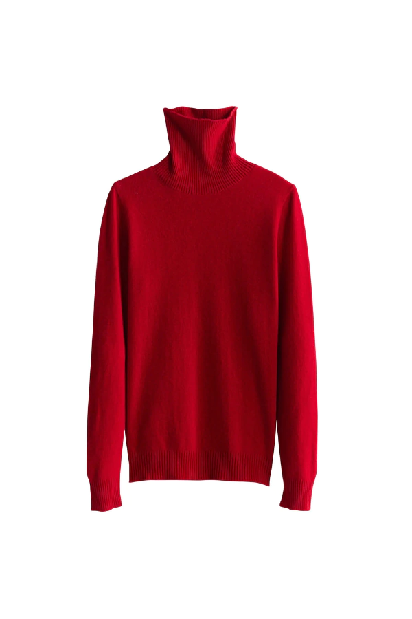 Blusa de gola alta, confeccionada 100% em Cashmere.
