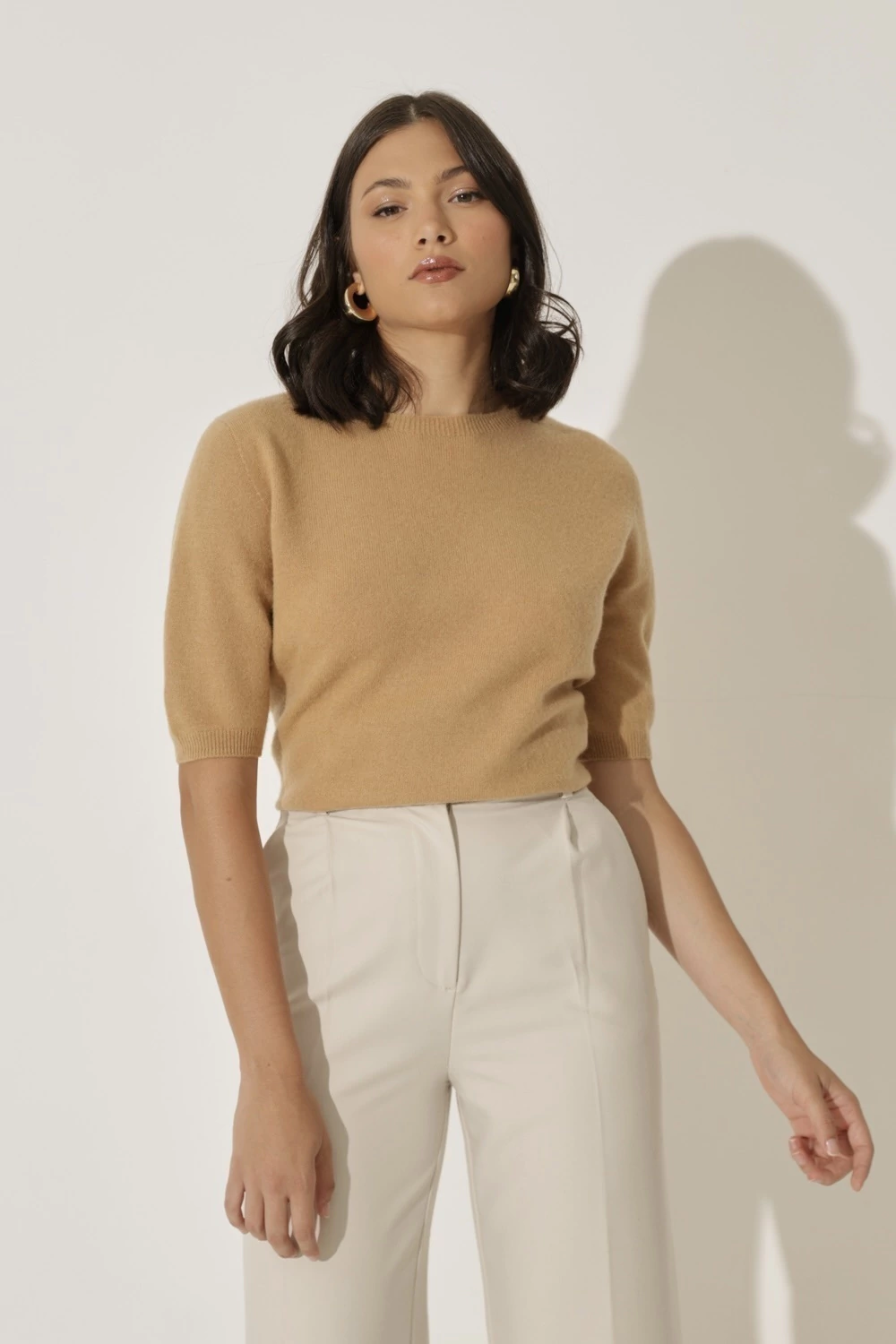 Blusa confeccionada 100% em Cashmere com mangas curtas e gola redonda.