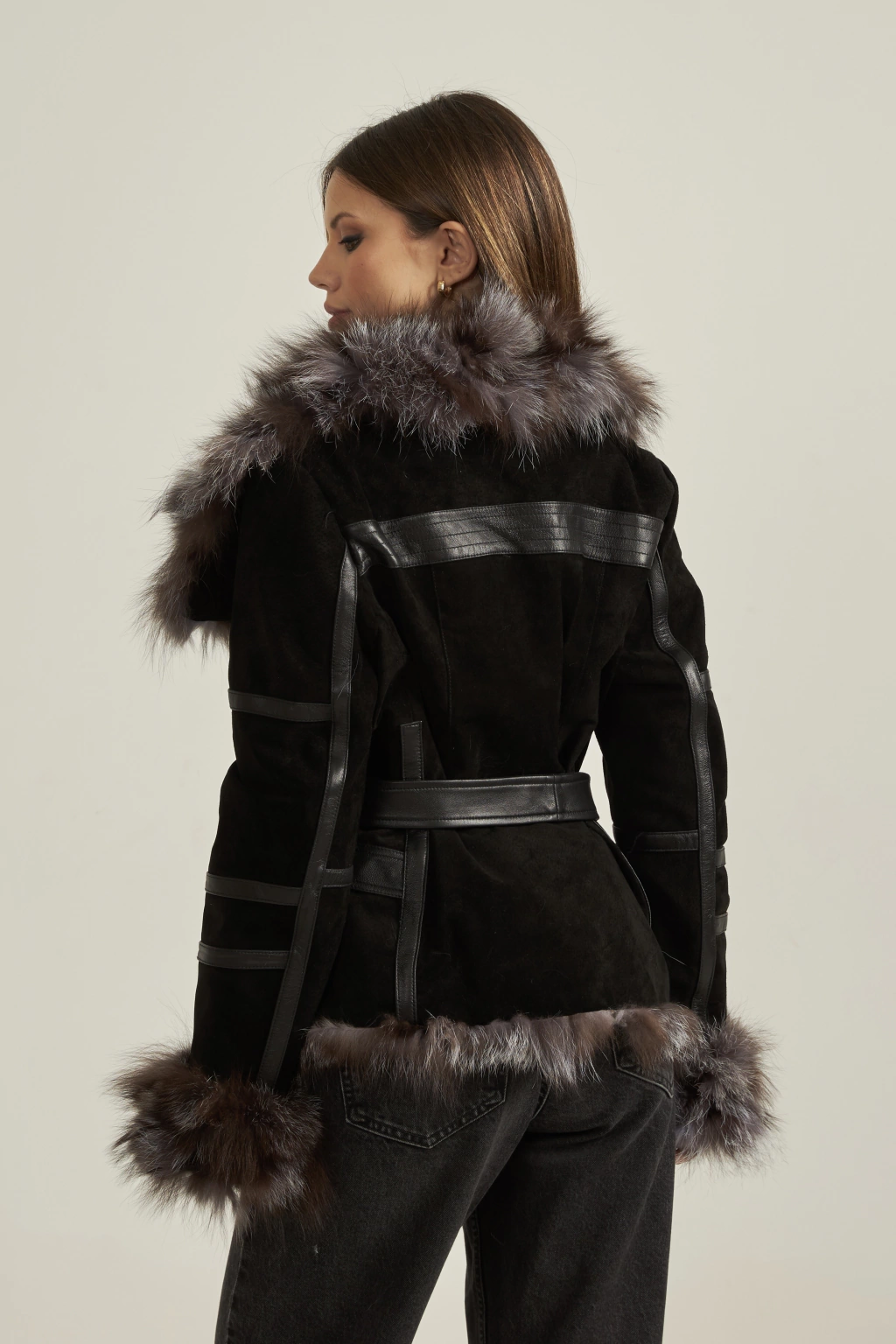 Nossa Jaqueta combina o Nobuck, de textura macia e suave, com o couro natural, que cria um mix de texturas interessante e sofisticado. A aplicação em pele nos punhos e na gola adicionam um toque luxuoso a peça, e proporcionam um maior conforto e aquecimento para os dias frios. A Jaqueta fica ainda mais completa com a faixa em couro na cintura. Possui bolsos laterais e fecho frontal em zíper.