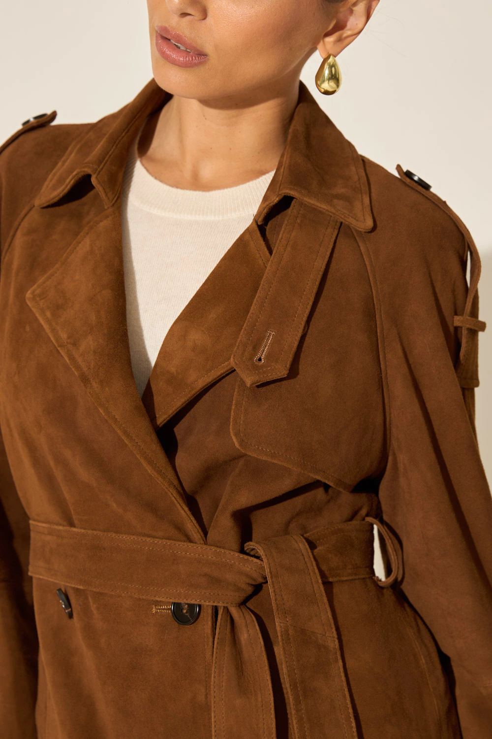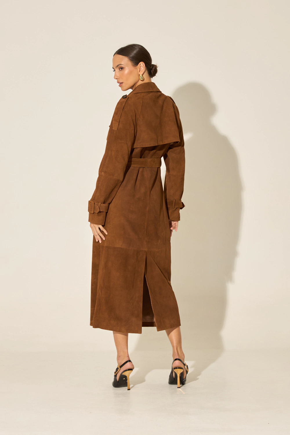 Descubra a sofisticação e elegância exclusiva do nosso sobretudo em couro camurça, uma peça que transcende o tempo e as tendências. Confeccionado 100% em couro camurça macio e totalmente forrado, proporciona uma textura rica e toque aveludado inigualável. Com um design clássico e rico em detalhes, ele possui a lapela sobreposta, abotoamento duplo frontal, bolsos funcionais e cinto para ajuste na cintura e também nos punhos. Seu comprimento maxi na altura dos tornozelos e sua modelagem reta e oversized, contribuem para o conforto e versatilidade da peça, enquanto garantem um visual moderno e ousado. É a peça perfeita para quem busca um estilo único e refinado.